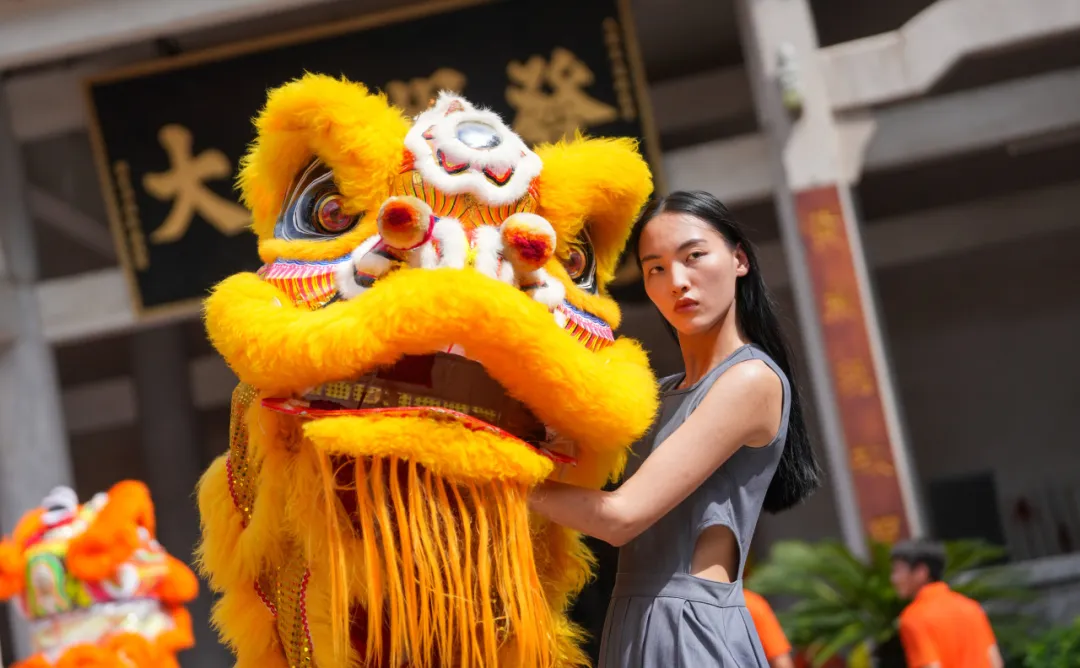 第二天,模特们来到西樵山下渔耕粤韵文化旅游园和黄飞鸿狮艺武术馆,探索非遗与时尚艺术的密语,揭开非遗中艺术美学。