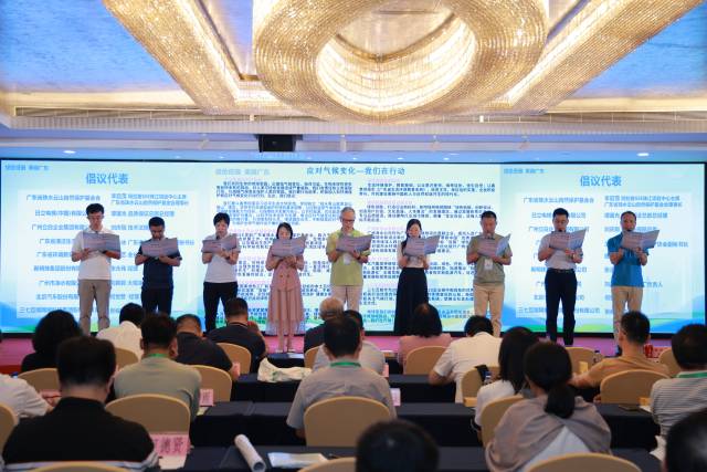 活动最后,广东省珠水云山自然保护基金会、广东省清洁生产协会、广东省环境教育促进会、广州立白企业集团有限公司、新明珠集团股份有限公司、日立电梯(中国)有限公司、广州市净水有限公司、北汽(广州)汽车有限公司、三七互娱网络科技集团股份有限公司9家单位代表共同宣读了《应对气候变化—我们在行动倡议》,号召社会各界共同为应对气候变化贡献力量。