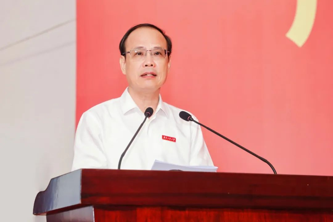 邱学青以《争做攀撑广工人 勇当新质生力军》为题作讲话。“寒窗之旅,冠军之路,背后是共同的拼尽全力,是一样的永不放弃。”他表示,送给大家的“热血青春‘篮’不住”为主题的录取通知礼盒以及签名球衣,传递的不仅仅是祝贺和喜悦,更寄托传承着“勇于拼搏、敢于胜利”广工精神。“选择广工,你们将度过怎样的大学生涯?”他说,唯有经历钻研之苦,面对质疑之辣,承受挫折之酸,方能品味成长之甜,最终找到属于自己的精彩答案。