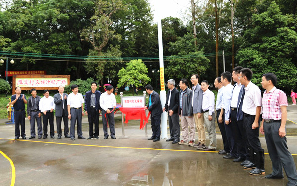 座谈结束后,陈新、陈卓武、张学理和黄镇生共同为“雅堂村灯光球场”(由机关一总支、机关二总支捐赠)、“东江纵队雅堂旧址史料展室”揭牌,代表学校和学校青年联合会分别向雅堂村委捐赠雅堂村灯光球场建设经费,向雅堂小学捐赠奖学奖教经费。校领导还对贫困户进行了走访慰问。