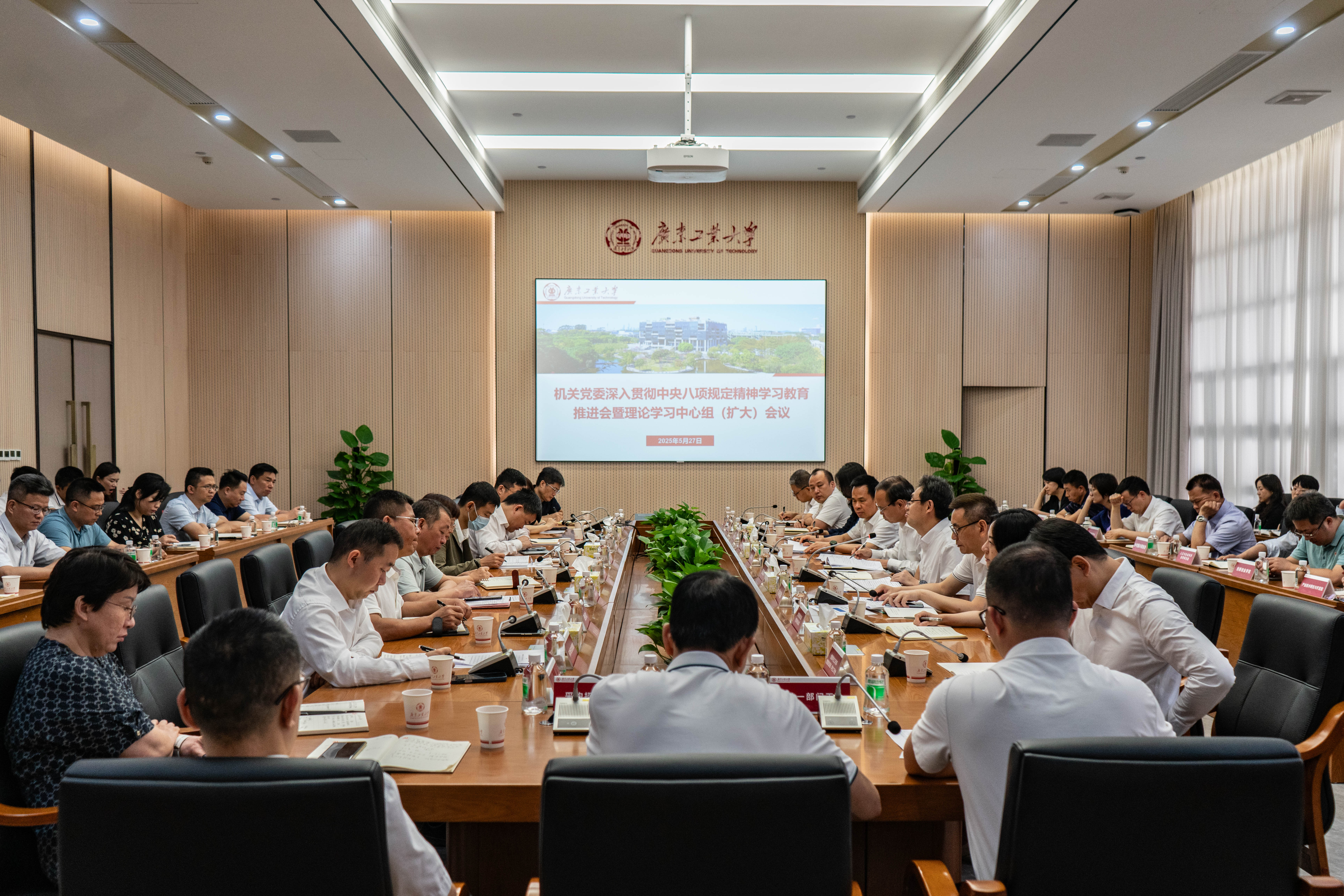 5月27日,机关党委在大学城校区召开深入贯彻中央八项规定精神学习教育推进会暨理论学习中心组(扩大)会议,深入学习贯彻习近平总书记重要讲话和重要指示批示精神,通报学习教育启动部署以来的进展情况并布置下一阶段工作,以作风建设的新成效推动机关党建走深走实、高质量发展。学校党委副书记、校长邱学青,党委常委、纪委书记、广东省监委驻开云网页版登录入口监察专员庞建国出席会议并讲话,机关党委委员、党支部书记、各单位、部门中层干部70余人参加会议。